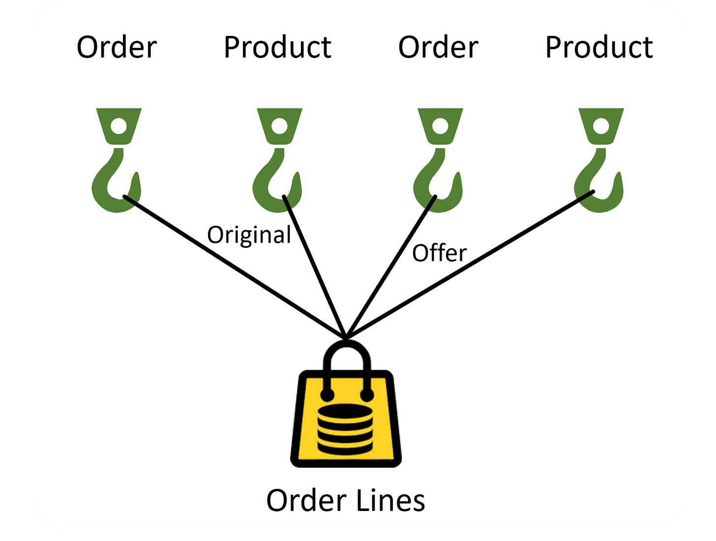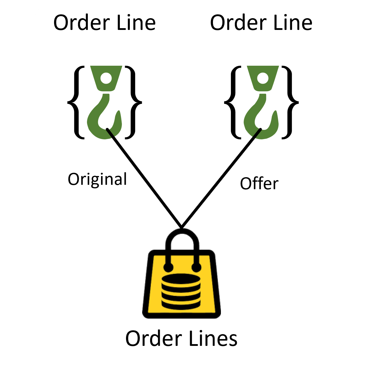 Now we have four distinct references to hooks, and we must qualify any duplicate references for the same hook, in this case, Original and Offer. It is beginning to look a bit messy. To clean things up a bit, we could make use of the Order Line compound hook, as shown in Figure 4.9.